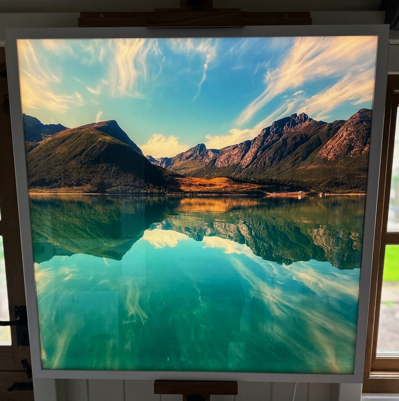 We combine our evenly illuminated powerful led light sheet with a number of framing options to help you create the illusion of looking out onto your own piece of heaven, brighten up your basement or create a stunning vista to take your everyday thoughts away.